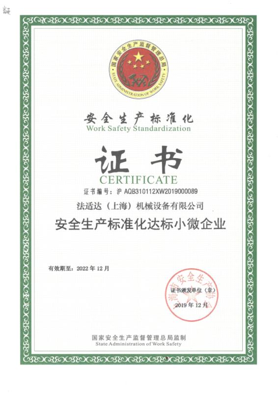 法適達通過安全標準化認定,拿到上海市安全協(xié)會頒發(fā)的證書。